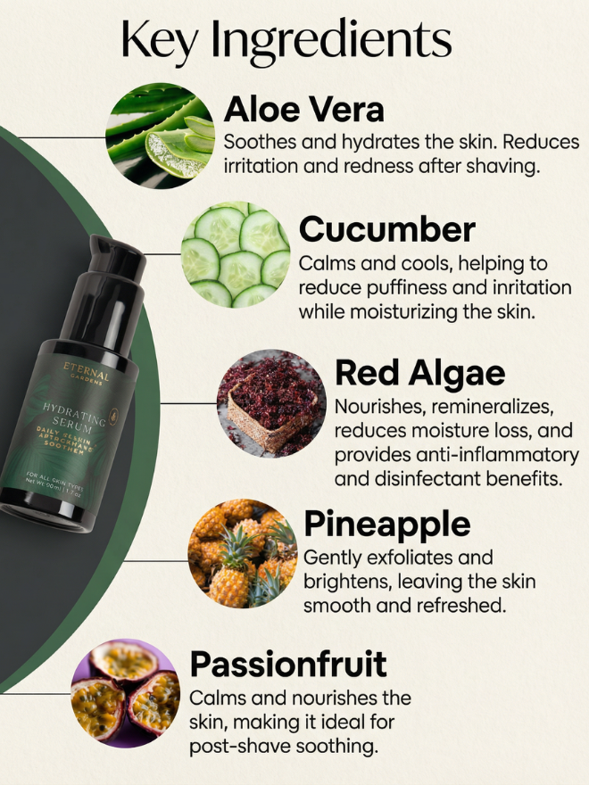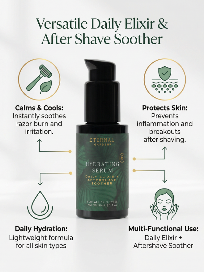 If you're dealing with inflammation and breakouts, this is the right product for you. Experience extreme skin nourishment with our Hydrating Serum & After Shave Soother — a multi-functional formula crafted with high-performing botanicals. This fast-absorbing serum delivers weightless hydration, calms post-shave irritation, and leaves your skin with a healthy, refined glow. Thoughtfully formulated with eco-conscious ingredients for skin that feels as good as it looks.