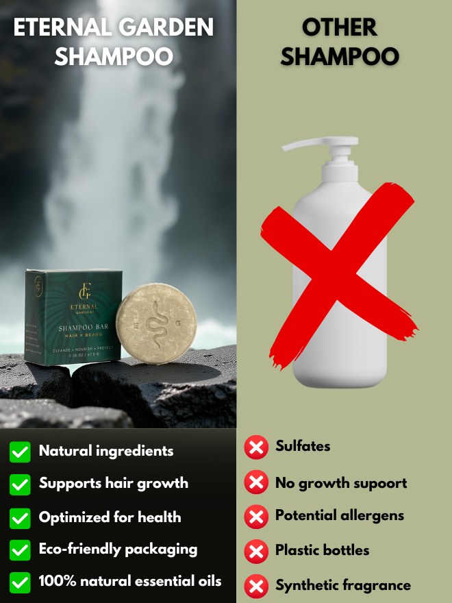 Did you know that it takes 450 years for a plastic shampoo bottle to fully decompose? Plus, most liquid shampoos and conditioners are 80% water! That, and the fact that one bar is equivalent to three plastic bottles is what led us to create Eternal Garden's Shampoo & Conditioner bars for Hair + Beard.